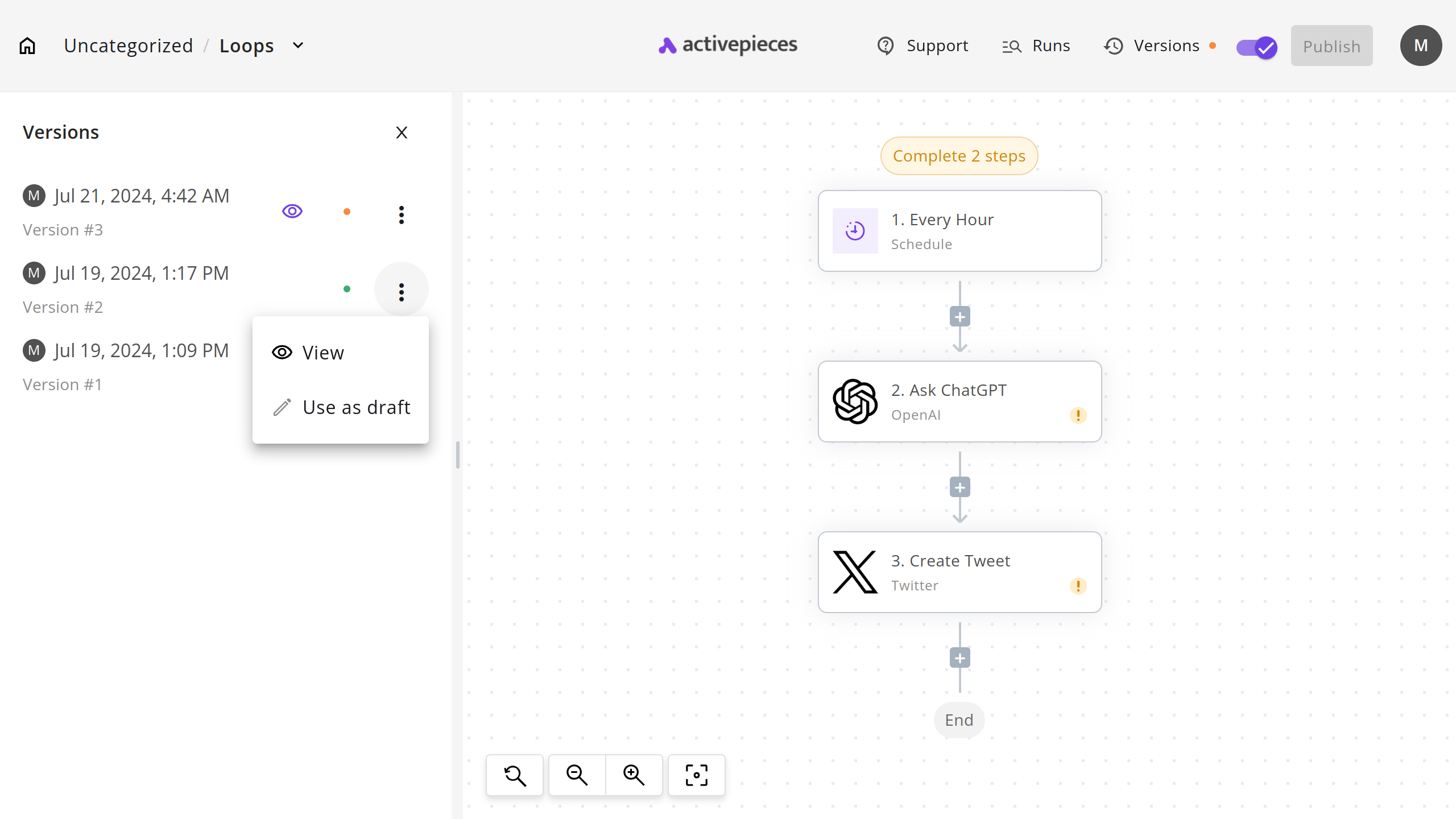 If you try to edit a published flow, Xino.ai will create a new draft if there is none and copy the published version to the new version.